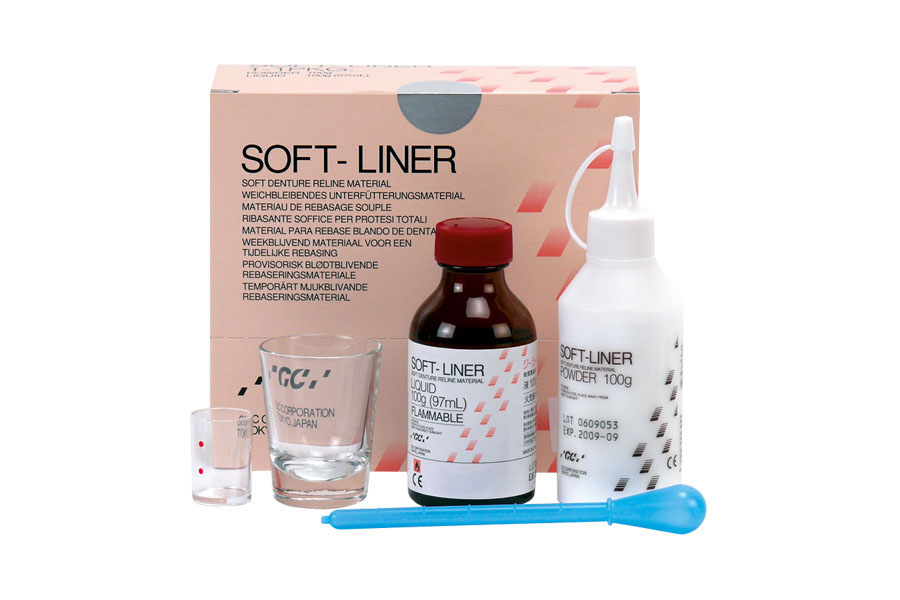 Pour rebasage souple provisoire. Peut être laissé en place pendant 2 mois (hygiénique grâce à sa surface lisse). Teinte blanche.